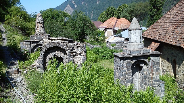 Вы увидите древние захоронения в селе Илису. Сейчас такие надгробные сооружения не возводят, предпочитая ставить на могилах мраморные или иные плиты. Одна из показанных могил принадлежит илисуинскую султану Али. На территории Илису был султанат, находящийся в вассальских отношениях в разное время с Персией и Турцией. Последний илисуинскский султан Даниял был свергнут пришедшим со стороны Тифлиса кавказским военным корпусом императорской России. Султан Даниял воевал на стороне Шамиля и покинул его в результате распрей одним из последних.