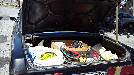 Кахского грузина Роми я знаю много лет. Он развозит в своем черном ГАЗ-31 овощи, фрукты, домашнее масло, грузинские спиртные напитки по Домам семейного отдыха в Гахском районе и в селе Илису. Останавливается в местах скопления отдыхающих и местных жителей, продавая им продукты, закупленные рано утром в его родном грузинском селе Алибейли (Алибегло),