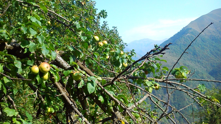 Встретилась высокая яблоня с горьковатыми плодами.