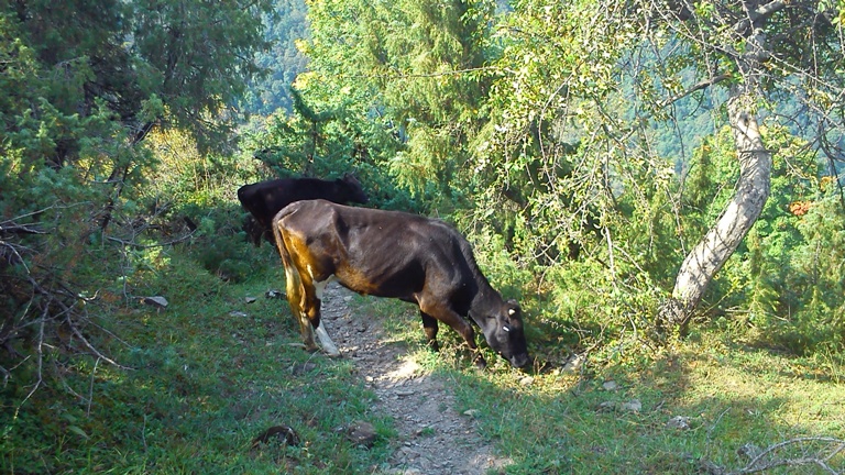 Отправляюсь вверх по каменистой дороге. В руке - дубинка для защиты от пастушьих собак и медведей. Помет медведей я видел на этой тропе несколько раз. Красного цвета от сьеденного кизила, он легко распознается среди коровьего навоза и помета шакалов.