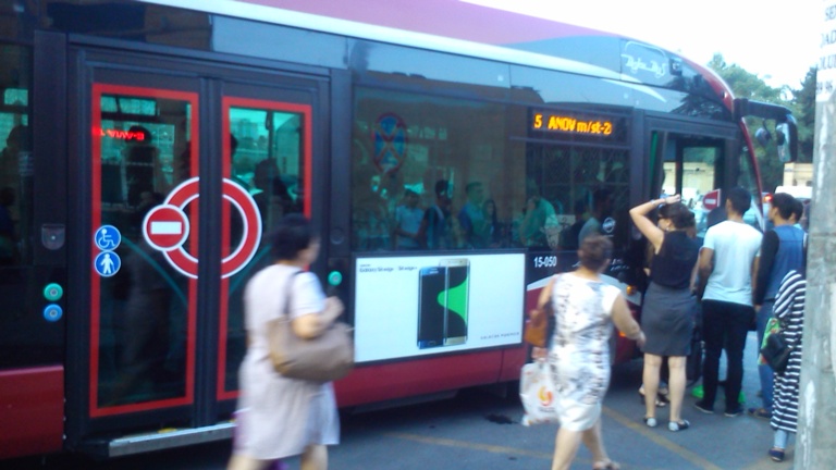 Но вначале смотрел на площади у жележнодорожного вокзала новые автобусы и автобусную систему BakiBas. На телевидении гражданам объясняют, что садиться в них можно только в переднюю дверь и сразу оплатить посредством новых пластиковых карт BakiKart. Автобусы оснажены кондиционером и WF, останавливаются только в установленных местах. Все это для азербайджанцев внове, наши автобусы похожи на нас: что-то вроде больших и добрых такси, тормозящих при поднятии руки прохожего и взимающих оплату наликом