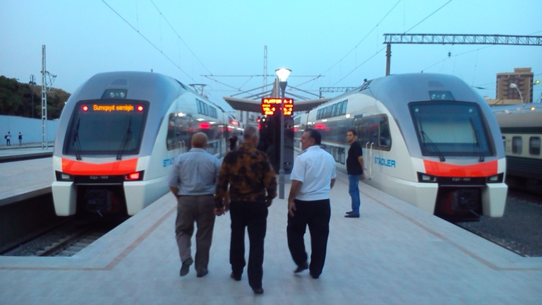 Из Баку в Сумгайыт вечерним рейсом едет рабочий люд. Внешность пассажиров диссонирует с швейцарским убранством поезда. Если закрыть глаза и слушать разговоры, то как будто едешь в советской электричке. Разница в том, что новый поезд движения очень плавно, без рывков и почти бесшумно. В салоне слышны звуки кино и телепрограмм, и музыки раздающиеся из планшетов и телефонов пассажиров. Многие уткнулись в интернет