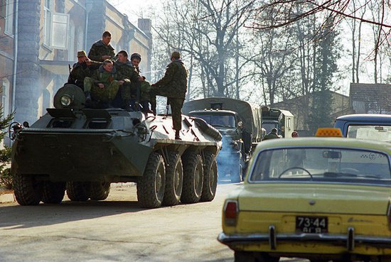 Ночью, около двух часов мы проснулись от взрывов и стрельбы в городе. Я с сестрой приникли к окнам. Улица была в кромешной темноте, но небо пылало красным от взрывов и стрельбы. Тогда мы жили в 4-м микрорайоне, круг 4-го микрорайона был от на расстоянии пяти минут, также близко площадь 11-й Красной Армии, так она тогда называлась, сейчас площадь 20 Января. Звуки боя были слышны до утра, за это время по нашей улице проехали только 2 машины с скоростью пули.