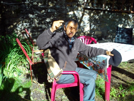 Сосед-друг Али вчера ходил верхом в горы и принес оттуда много халъяра, чтобы хватило раздать соседям. Досталось и мне. На нижнем снимке - Али рассказывает как трудно и опасно было добираться по горным скалам кполяне с халъяром