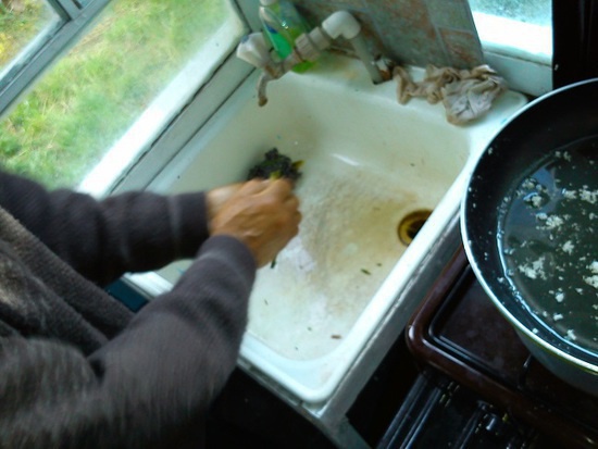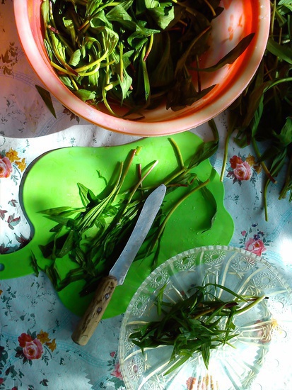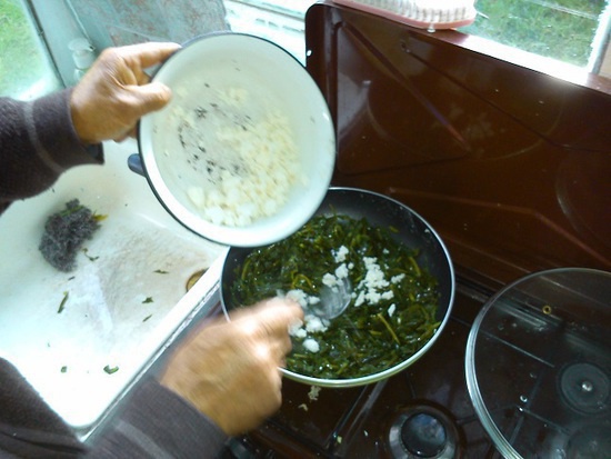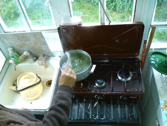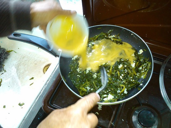Готовят так: сначала надо промыть растение, и разрезать на немелкие кусочки, примерно каждый листик на три части. Потом варим в воде до потемнения цвета и размягчения листьев и стебельков. Выливаем воду и выжимаем халъяр руками. Раскладываем на сковородку с маслом, жарим на медленном огне (кажется процесс называется "тушение"). Естественно, не забудем посыпать соль по вкусу. В конце процесса заливаем яйцом (я использовал 4 яйца) и жарим до констистенции яичницы. Я самовольничал и посыпал все это тертым сыром, от этого вкус деликатеса только лучше.