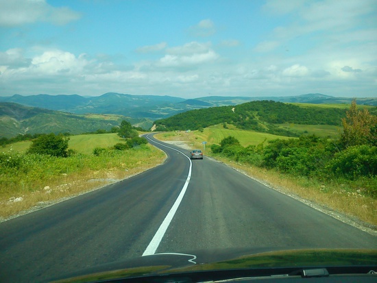 Сегодня отмахал 320 км от Гаха до Баку, это немногим меньше расстояния из конца в конец страны. Вел машину по горной дороге: Гах-Огуз-Исмаиллы-Габала-Шамаха-Баку. Асфальтовое шоссе прекрасно до Шамахи, потом идут дорожные работы и дальше от Гобустана гнал иногда 140 км в час, причем скорость не чувствовалась. Ограничивали только многочисленные автодорожные патрули и автоматические радары. А патрульные стоят на вершинах, откуда видно как плетутся за тихим самосвалом нетерпеливые легковые, и когда кто-то не выдерживает и пересекает одинарную сплошную линию, они его и ловят. Я не пересекал, ни разу с гаишниками не общался.