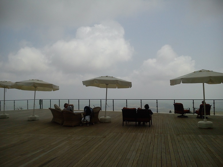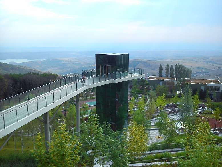 Представьте современное 9-этажное здание построенное на середине высоченной горы, вершина которой заканчивается большущей средневековой крепостью Чыраг-гала. Потому и называется центр отдыха - Галаалты, то есть под крепостью. В советское время здесь, в захудалом санатории пили серную воду социалистические товарищи. Тот санаторий снесен совместным государственно-частным капиталом и вместо него выстроили чудо между облаками. Сидищь на террасе в глубоком кресле, а рядом летят орлы и облака.