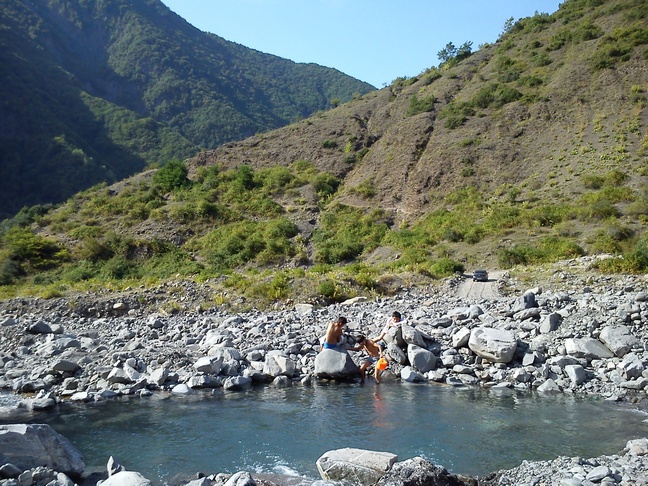Дети перегораживают горную реку камнями, получается запруда (хал) в которой купаются, ныряют, загорают