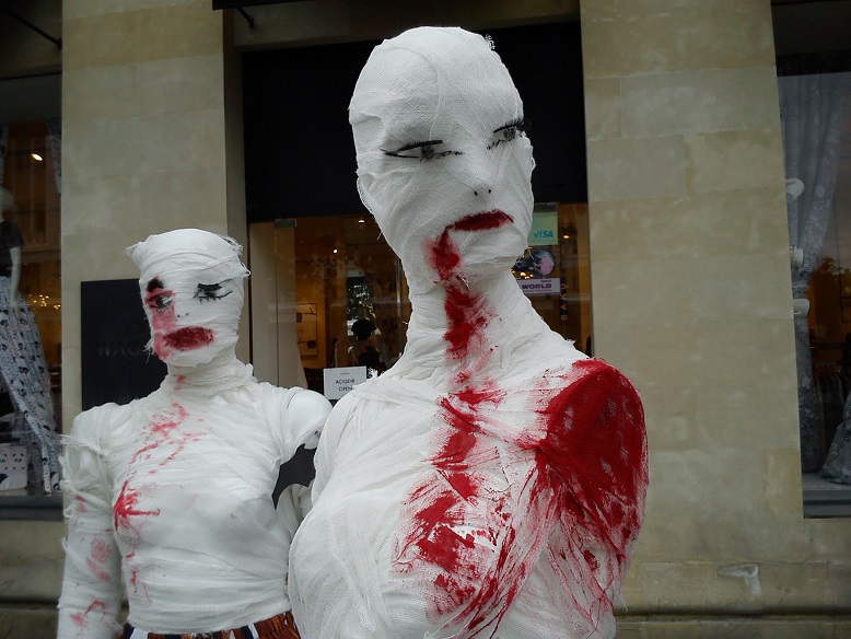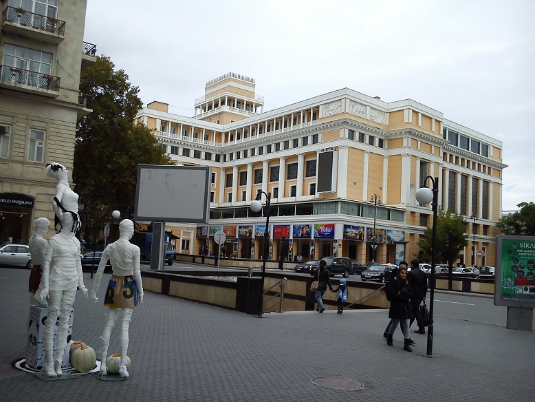 Проходил по центру Баку и увидел эту группу манекенов, переделанных в ужастиков. Смотрю, люди оглядываются и фотографируются рядом с группой. Сам сфотографировал, только на третий день вспомнил, что это Хеллоуин чертовый приближается. Вспомнил когда рассмотрел на снимках тыквы. У нас же национальный американский праздник разных привидений уже становится родным-азербайджанским, как день святого Валентина. Да и Новый год, то есть Рождетство тоже лет 200 назад был импортирован в Азербайджан из тогдашней России.