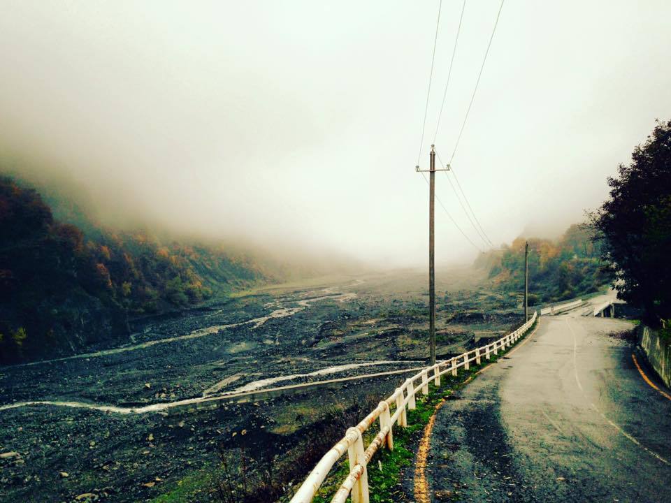 На этой синей скамейке, покрашенной остатками ремонта в моем доме, летом свободного места не бывает. Каких только жарких обсуждений на ней не проводилось. А сейчас некому присесть. Отдыхающих нет, жителей в Илису мало. Из каждых трех домов два на замке, а то и все три. Одни желтые листья и горы в тумане