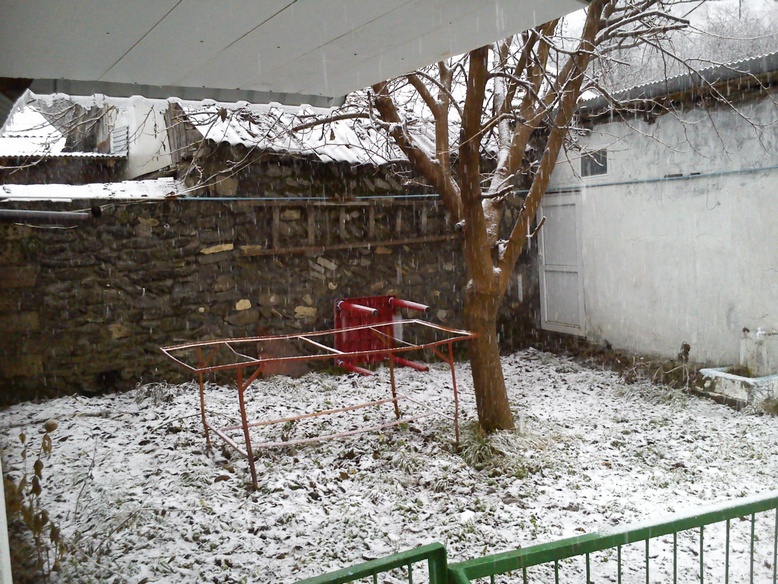 Ноябрьский снег в моем дворе, посыпал сегодня и через час стал таять. В октябре был снег сильнее, Илису покрыло 20 см-вым слоем. Климат на самом деле изменился, такой ранней зимы здесь не помню. Говорят: у природы нет плохой погоды. А лето с зеленой травой, цветами и ясным синим небом все таки лучше
