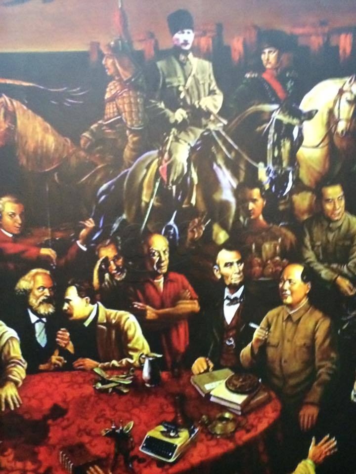 В стамбульском квартале Караташ есть кафе, на стене которого огромная панорамная роспись. Художник собрал мировых лидеров. Выше всех, разумеется, Кямал Ататюрк. Фотографии снимала Джахан Алиева. Она искала Путина и нашла его в самом углу, сидящего, грустного...