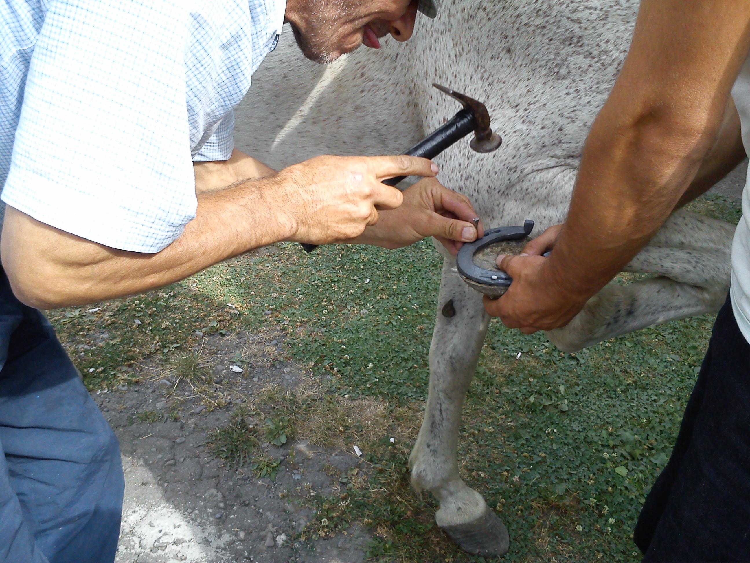 А сосед Намика - фермер Шахмардан сегодня подковывал белого коня. Технология налбанда (не путать с Налбандяном - просто у армян фамилии созданы из слов ненавистного им тюрского языка. Нал - подкова, налбанд - подковочник, подковывающий) за тысячу лет не изменилась. Те же подковы, такие же специальные гвозди, инструменты и способ работы.