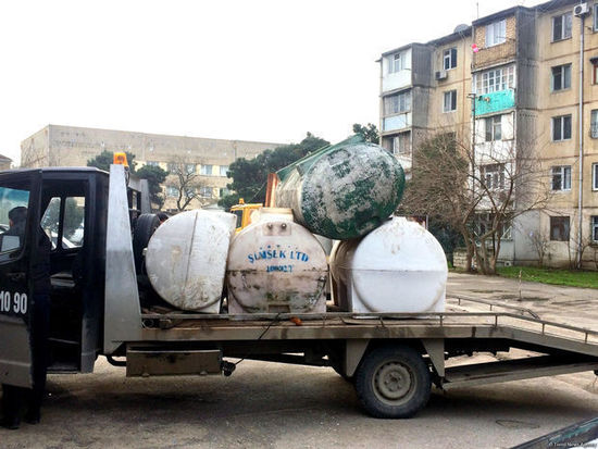В наш двор одним летом вода почти не подавалась, вовсе. А я живу на последнем этаже. Ходили с другом за водой с ведрами далеко, в соседний квартал. Я наловчился таскать, наполнял водой ванну, чтобы дети не испытывали нужду. Как только вода а ванне хотя бы на одно ведро уменьшалась, я бежал за водой, чтобы всегда была полная. Накачал мускулы как культурист. Потом при Гейдаре Алиеве началась масштабная замена водопроводных труб и насосов. В нашем дворе поставили швейцарскую помповую систему, вода бьет 24 часа в сутки. Бак заржавел, мы его не наполняли, так и другие. И вот, баки увозят.