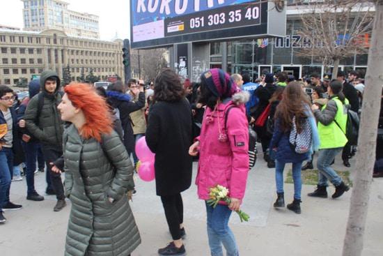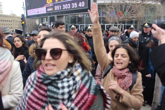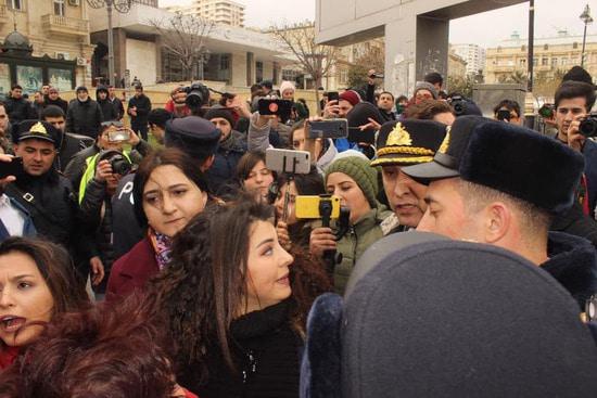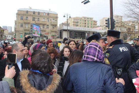 Бакинская власть запретила группе женщин провести шествие, которое женщины хотели посвятить призыву бороться с насилием мужчин. Почему запрет? Не знаю. Понятно, что вреда от разгона демонстранток мы получили больше, чем пользы от бессмысленного запрета. Вряд ли запретители не знали, что разгон мирной демострации будет использован потом против Азербайджана. Ноу-хау вчерашнего события в том, что полиция блокировала выход женщин на планируемый маршрут демонстрации, а кинулись их бить... уборщицы. Одна боевая уборщица попалась на глаза фотокорреспонденту, см. последний снимок. Фотографировала и выставила в сеть журналист Гюльназ Гамбарли.