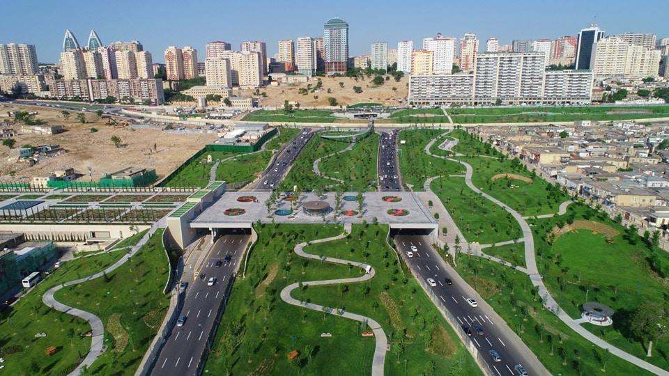 Этот парк рядом с моим домом. Сделано красиво, когда деревья вырастут станет очень хорошо. По центру парка проходит переходная дорожка, извиваясь и поднимаясь над автомобильными трассами. Благодаря этим двум автодорогам путь из верхней части Баку (Ясамал) до центра сократился до 10 минут и без пробок, почти без остановок можно быстро спуститься в центр. Все это хорошо и своевременно, но старого там уже нет. Вот так: надо выбирать между улучшением качества жизни и желаниями туристов
