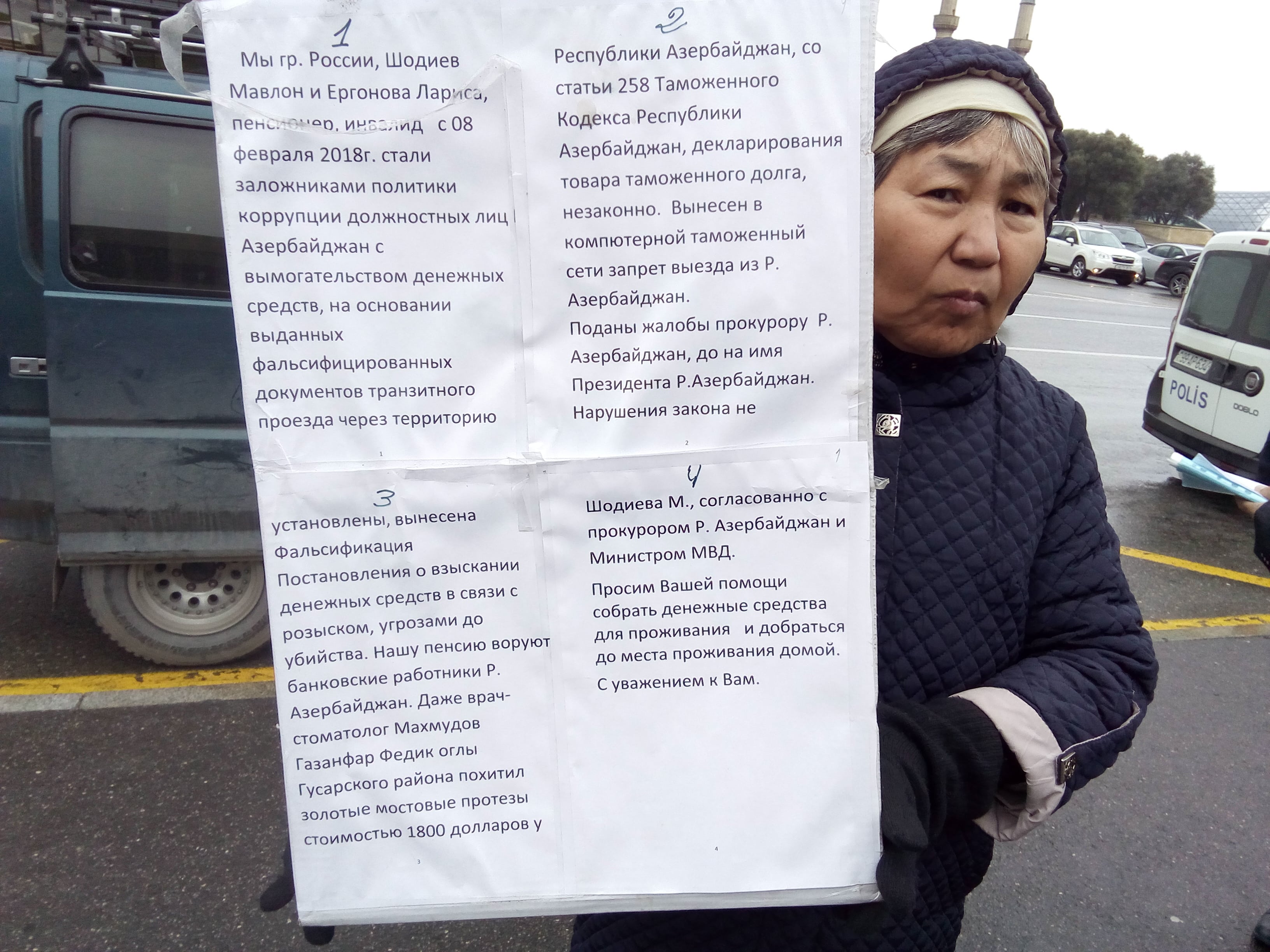 Сейчас перед зданием Милли Меджлиса, который, кстати вчерашним указом президента был распущен до февральских выборов, видел пикет двух семей - одна состоит из бывшых граждан России, вторая - граждане российской страны сейчас. У них разные проблемы. Говорят, что обокрали воры, обчистили таможенники, обманул стоматолог, нет документов, гражданства денег, пенсий, поэтому едят то, что подают соседи. Плачут, требуют. Не знаю - правда - не правда. Не проверял, передаю то, что слышал и видел. Они жаловались во все инстанции, помощи и денег нет. Обращались в посольство РФ - тоже самое.