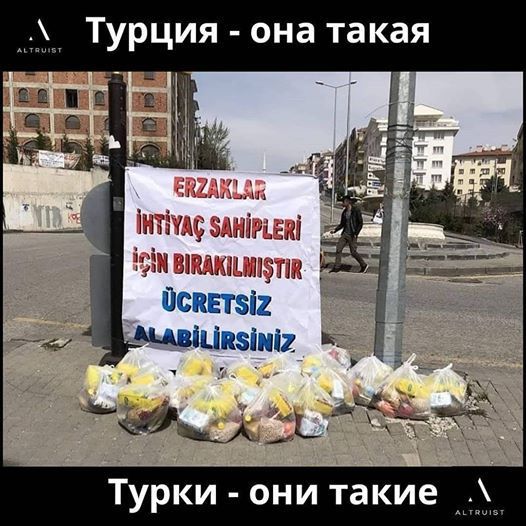 Сердобольность и самоорганизованность турок на порядок выше чем у азербайджанцев. В Азербайджане это движение, можно сказать, не выросло еще из уровня одиночных акций. Вчера художник Милена Набиева выехала кучей кульков, в которые разложены продукты, чтобы развести их по нуждающимся. В ее странице ФБ она принимает заявки от бедняков и помощь от добряков. Здесь ее фб-адрес для первых и вторых https://www.facebook.com/mina.en.142
