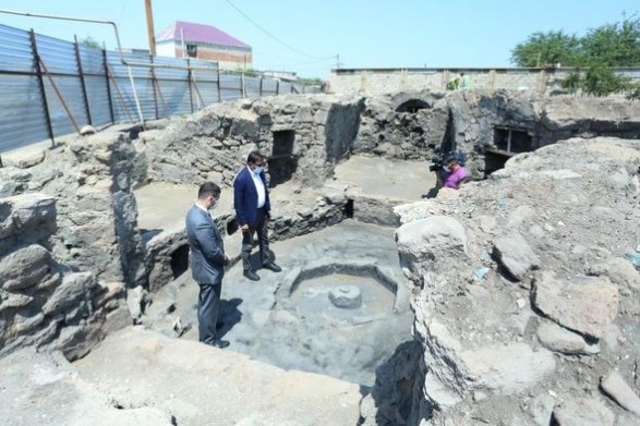 А вот что на этом месте создали в этом году. На 8-м снимке нового поселка показан Овдан - в таких строениях люди брали подземную воду - спускались по каменной лестнице вниз к подземному колодцу и черпали оттуда. Овданы, не действующие, сохранились в Баку и во всех поселках Апшерона. Дальше можно видеть развалин общественной бани и фотографию цеха по изготовлению ковров.