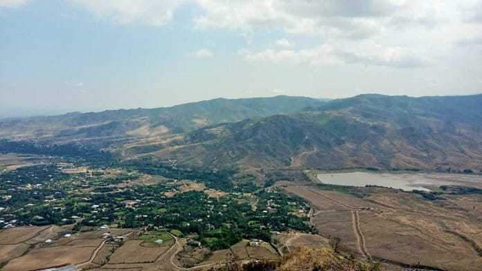 На 4-м фото азербайджанское село Агдам, дальше него водоем, по которому проходит фактическая граница между Арменией и Азербайджаном. На пятом снимке армянское село Чинари
