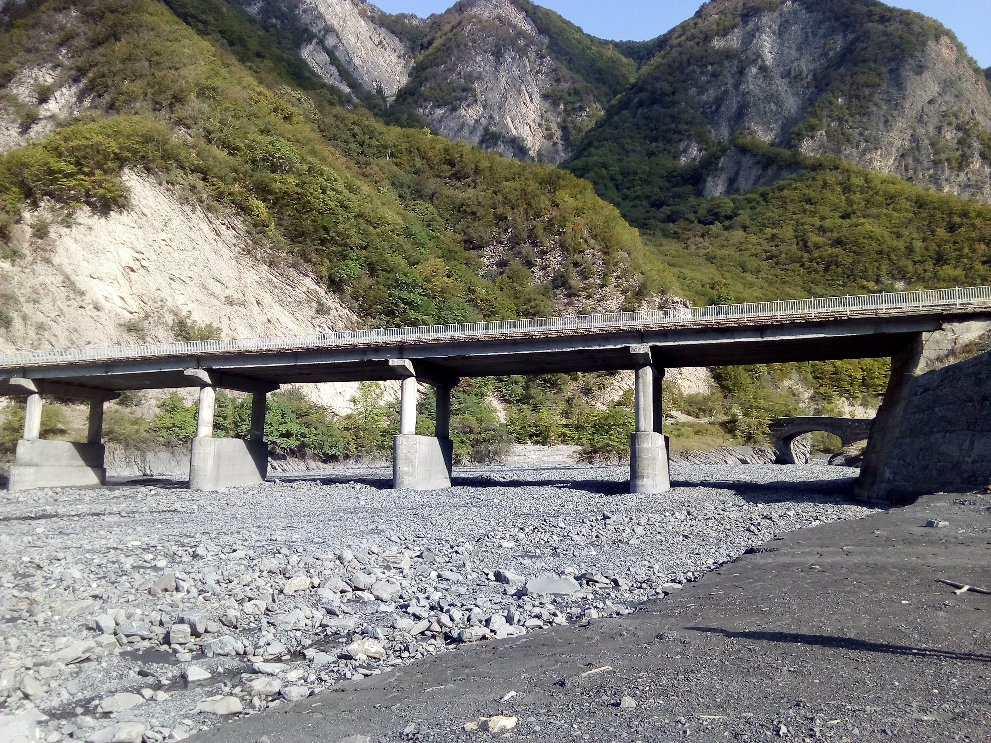 Два моста через реку Кюмрук в Илису. Относительно новый бетонный автомост, и вдали под аркой нового виден древний мост Улу корпю. Новый под селевыми потоками иногда разрушается, вода подмывает землю под опорой, а старый стоит на двух скалах, только если вода проходит выше моста, тогда уносит каменные бордюр. А мост замешанный на яичном желтке, стоит не шелохнувшись.Говорят, что в прежние века был пущен слух о золотом кладе, спрятанном под опорой старого моста. Под ним копали, ничего не нашли, потом эта глупость забылась.