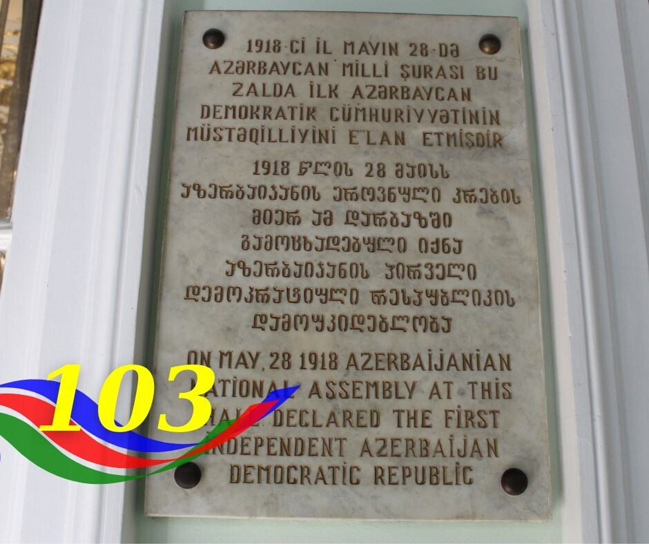 28 мая 1918 года была принята Декларация независимости, в которой провозглашалось создание в Азербайджане демократической парламентской республики. B Декларации отмечалось, что народы Азербайджана являются носителями суверенных прав, и Азербайджан объявляется полноправным независимым государством.