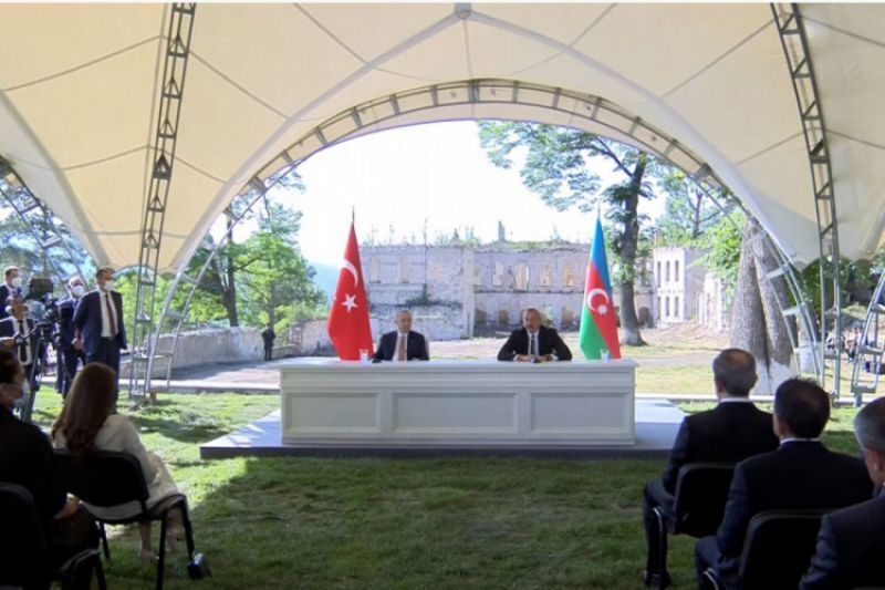 Документ подписан на фоне разрушенного армянами города Шуша. В этот город Эрдоган прибыл из Физули, который разрушен тотально, до уничтожения куриных сарайчиков. Он проехал вместе с И.Алиевым через освобожденный юг Гарабага, наблюдая человеконенавистнические проявления, которые мир не видел даже во второй мировой войне