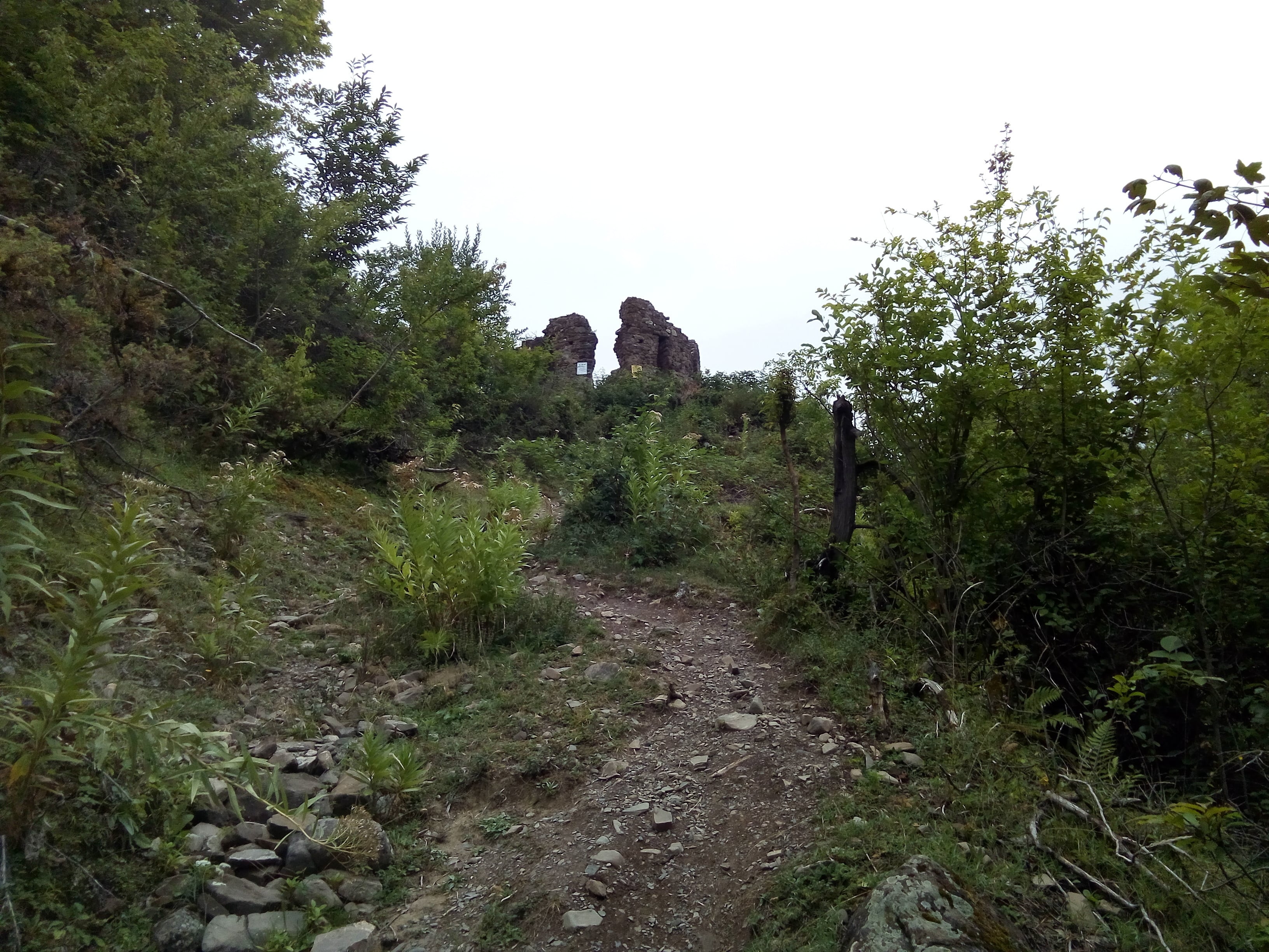Вот эта поляна, так с нее видна башня Галача. Новостью этого года стала табличка, укрепленная на стене башни. Я предлагал сделать это в фейсбучном послании, может, прочитали и написали. Табличка просит туристов не залезать на башню, чтобы фотографироваться или для других целей. Если каждый забравшийся на старую стену козел скинет с нее камень, от памятника ничего не останется. Ветер, дождь и снег и без козлов делают свое разрушительное дело.