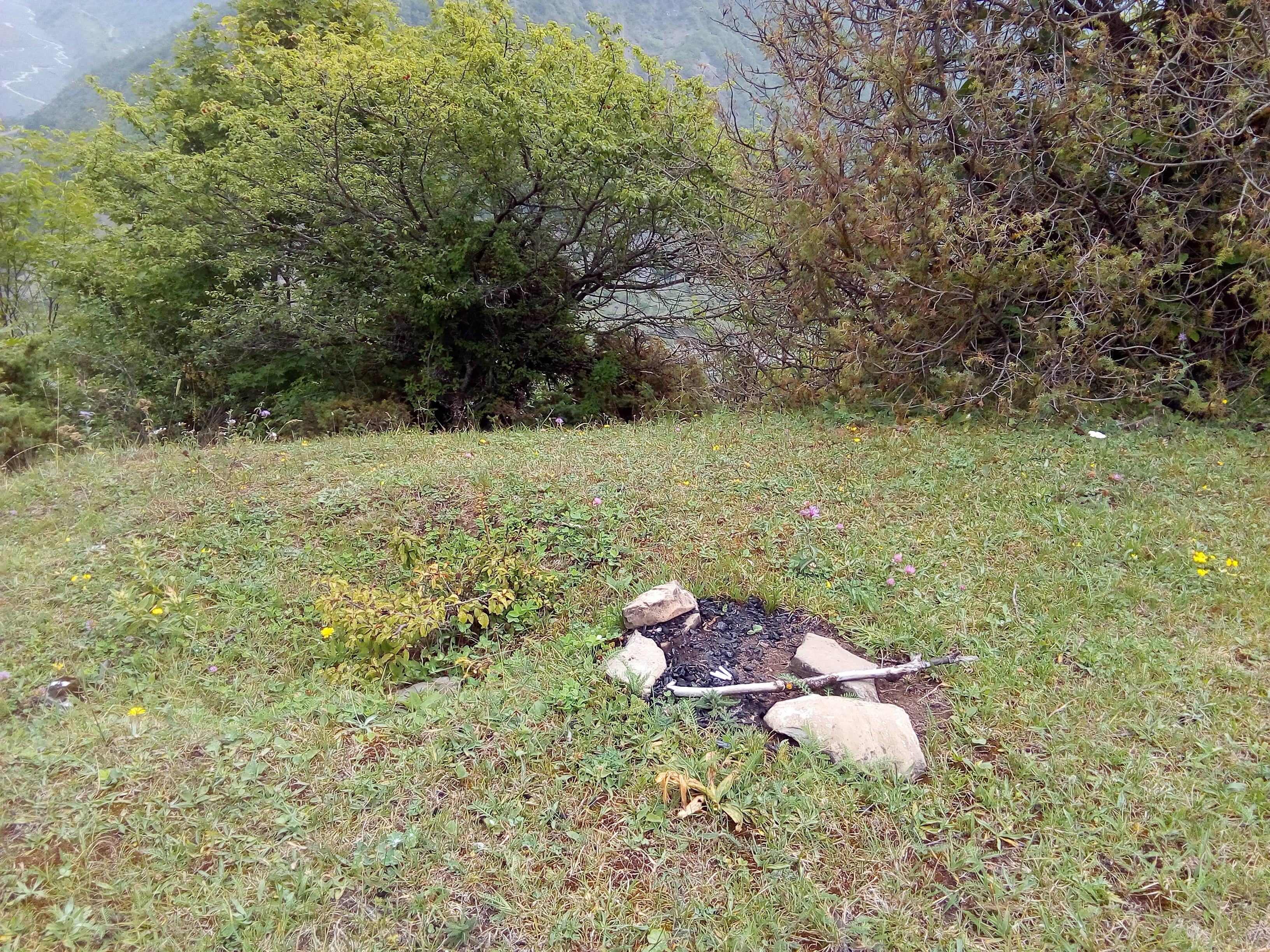 Полежал на поляне, отгоняя от себя мух. Если бы на насекомые, остался бы надолго. Хуже насекомых - наши туристы. Им же надо обязательно затащить на гору несколько бутылок разных напитков, обязательно арбуз, чтобы мусор там оставить. Вот следы отечественных варваров - место от костра. Неужели настолько было голодно и холодно, что пришлось для спасения жизней огонь разводить?