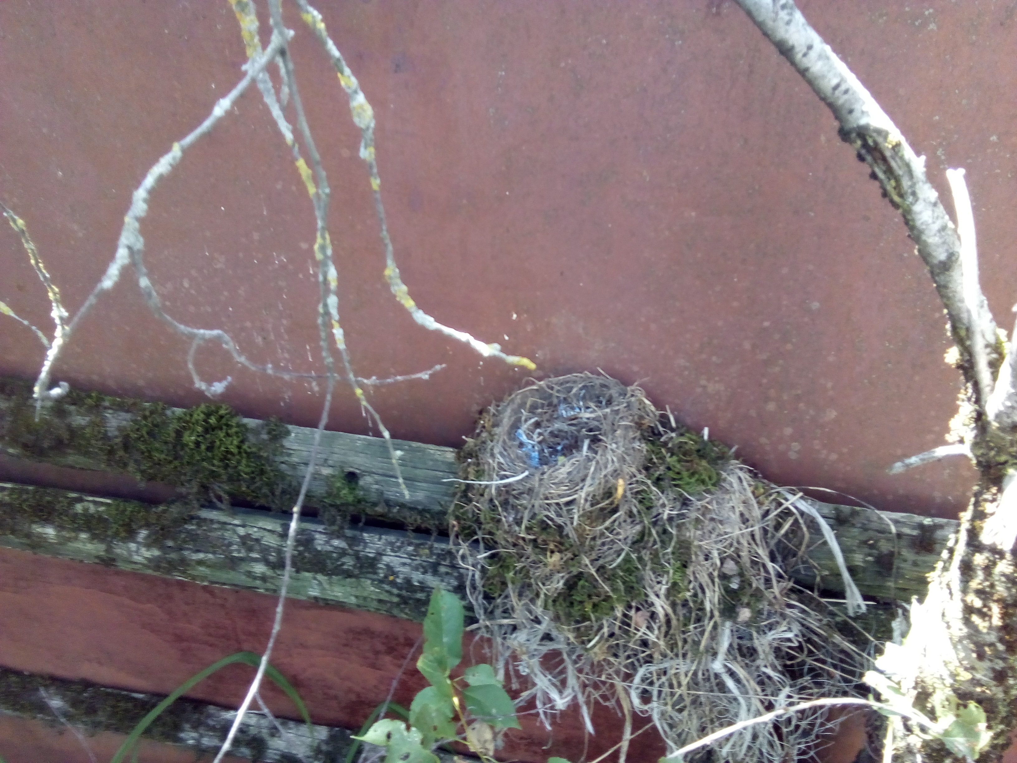 Сегодня обнаружил гнездо птицы в полутора метрах от забора, рядом с которым я ем. Гнездо надоумило написать пост о моих соседях из животного мира.