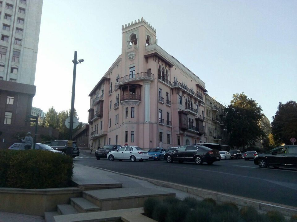 Этот жилой дом, красивый необычный, стоит напротив Бакинской филармонии, и рядом с ее красотой не замечается. Рядом - Администрация президента. А я считаю, что этот дом красивее соседних