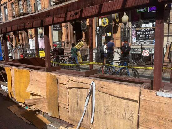 Очень люблю Манхэттен. Но то, во что его превратили, вызывает оторопь. На улицах появились, как здесь их называют, «террасы». Это открытые или полуоткрытые будки из каких-то кусков фанеры и пластика , которые рестораны завели для тех, у кого нет документа о вакцинации. Идея, наверное, хорошая, но ее исполнение - катастрофа. Повторю, это самый центр города. Ни пройти, ни приехать мимо «новой нормальности» невозможно. Ассоциация одна - фавелы.