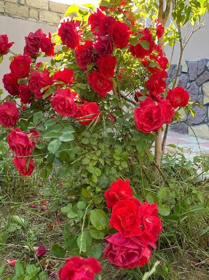 На месте срезанных веточек весной выросли новые. Виноградные лозы усыпаны зелеными гроздьями виноградинок-малышей, там показывать нечего. А розы покрыли все кусты, у меня их много. Розы малопахучие, ветер легко уносит лепестки - чувствуется, что сорт не специальный для выставления цветов на продажу.