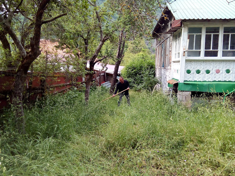 В Илису - горном кавказском селе в Гахском районе Азербайджана, летом жаркая пора срочных дел, которые нельзя из-за холодной и дождивой (снежной) погоды выполнять в три другие времени года. Обязательно у каждого хозяина сгнили половицы пола (как у меня), надо накосить траву для животных (последнее фото), нужны новые улья (первое фото), надо построить летнюю беседку для себя и туристов, которым летом сдаются комнаты (второй снимок). Люди заняты делом, которое приносит деньги, для некоторых это единственный семейный доход.