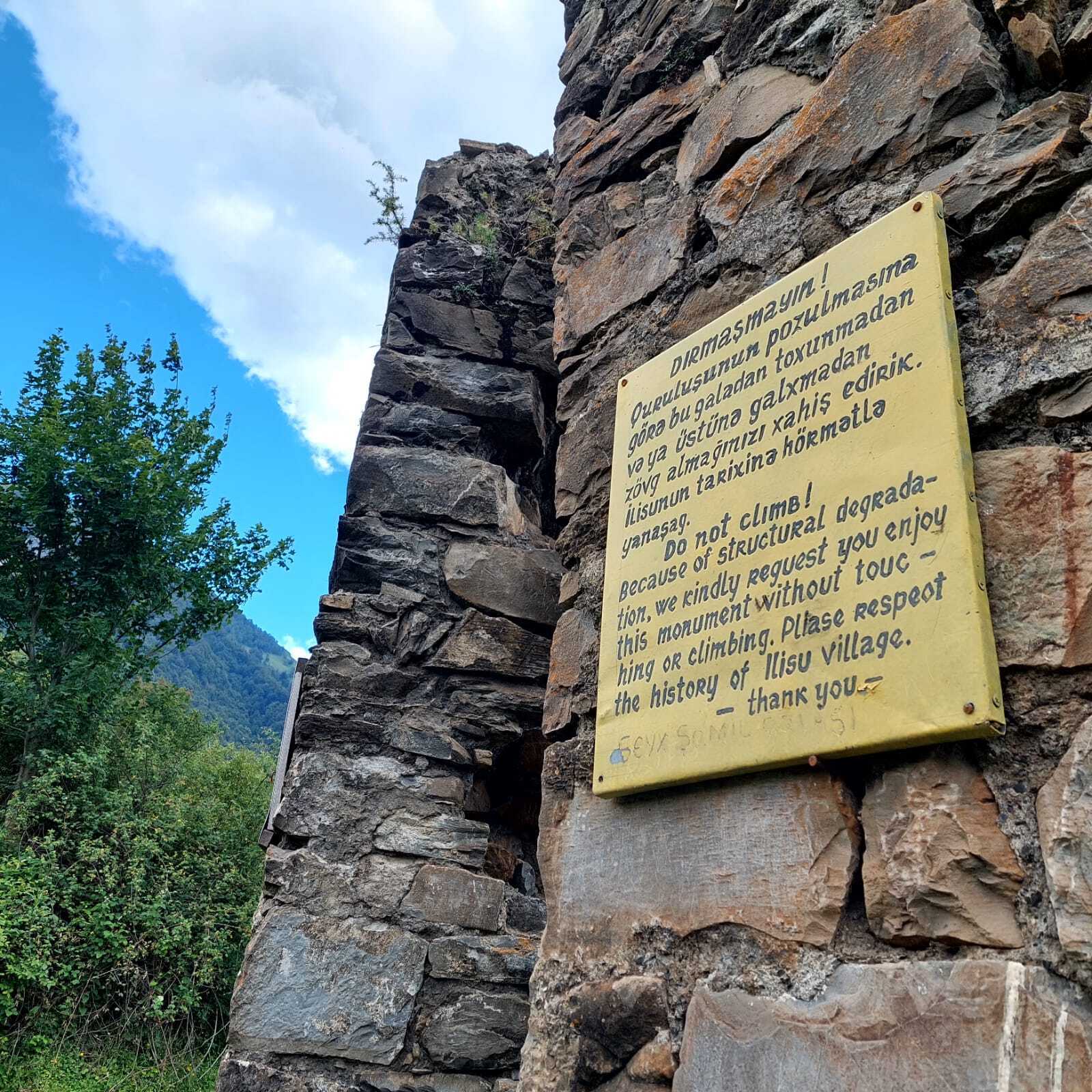 Приятным сюрпризом этого года была установка на стене башни надписи на аз.яз и англ. яз, с просьбой не взбираться на памятник истории.