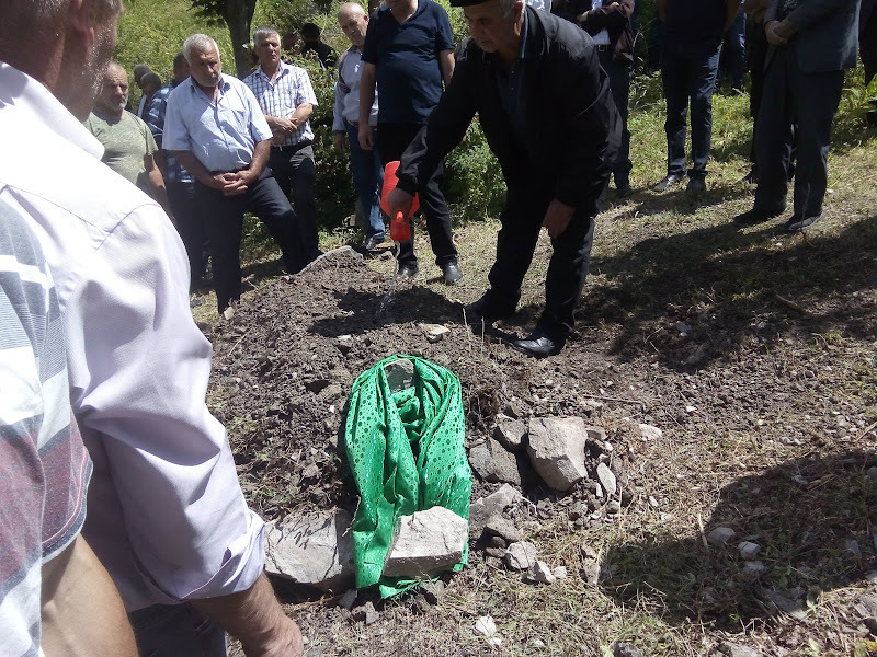 Технология тысячелетняя. Новые только применение пиленого известнякового камня, которые поднимают в гору, к кладбищу в "Ниве". Эти камни привозят для строительства домов из Баку, а в могилах применяют для укладки на дно.