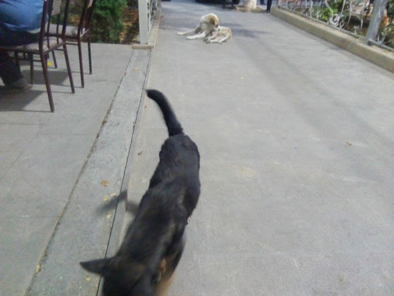 Место нашего отдыха в Шамахе я назвал "Кафе счастливых собак". Отъевшиеся на остатках пищи сотен ежедневных едоков, собаки валяются там где хотят, просыпаясь только чтобы почесаться. У нас теперь, научившись у турок, собак не обижают, люди обходят крупных животных, лежащих прямо на их пути, и это вызывает умиление.