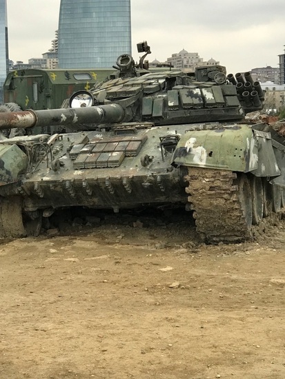 На фото армянский танк на бульваре в Баку. Участник агрессии, оккупации и аннексии сразу.