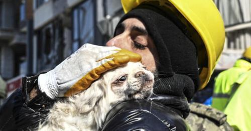 В Хатае спасатели нашли живую женщину спустя 104 часа после землетрясения, Узнали ее место по лаю собаки, оставшейся вместе с хозяйкой под завалом. Спасены оба. Собака на фото