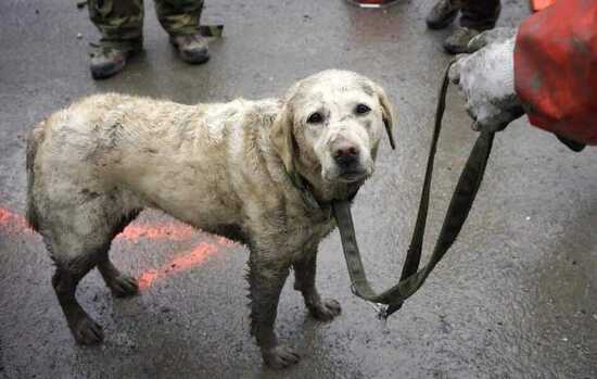 Другая собака - пес, нашел под завалами 10 живых людей, которых удалось вытащить. У настоящих ангелов нет никаких крыльев, - пишет читатель в соцсети. Собака усталая, грязная от лазания между бетонными плитами. см. фото