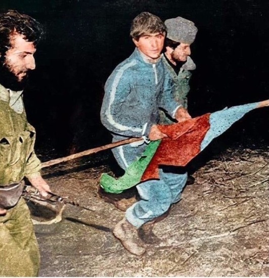 на фото: знаменосец Натик Гасымов. Герой Азербайджана. Ведут расстреливать