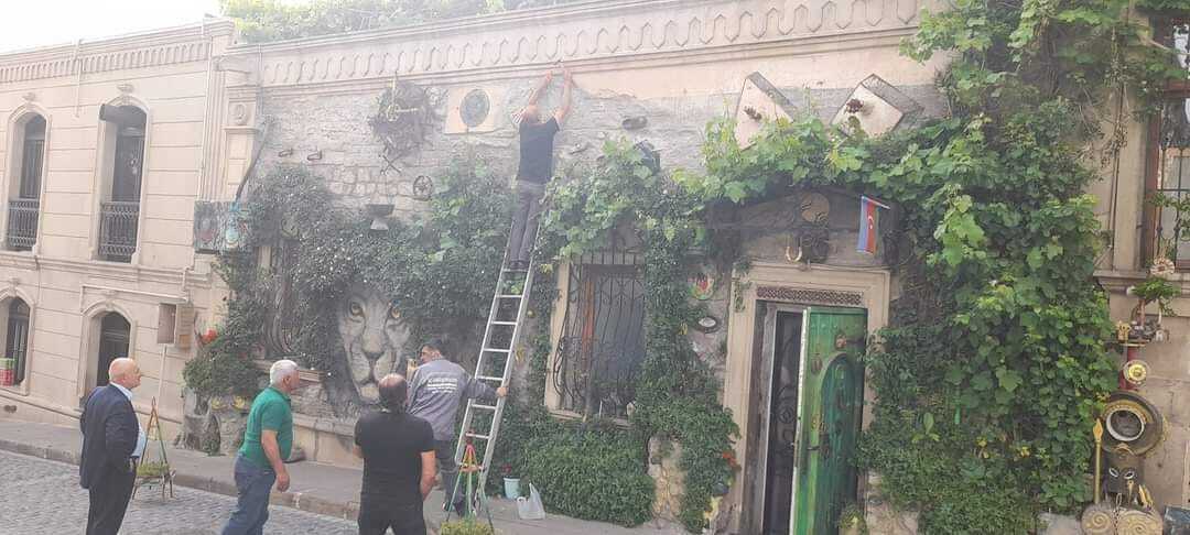 Али Шамси живет и творит в историческом доме, в Крепости, где нельзя гвоздь в стенку вбить без разрешения руководства историко-архитектурного заповедника "Ичери Шехер", Но деятелю искусства позволено, его дома изнутри и снаружи напичкан произведениями, привлекающими интуристов.