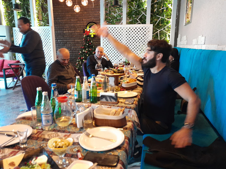 Среди обсуждавшихся тем - уникальность и историческое значение 2023 года, в котором вечная наша боль - Карабах, впервые очистился от враждебного элемента. Среди участников застолья офицер, воевавший в боях 2020 года, ему нашу особое уважение.