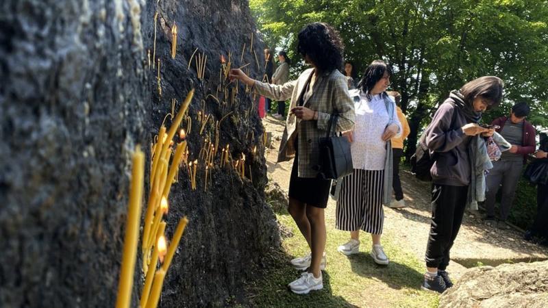 В моем родном Гахском районе, где компактно живут 7 тысяч грузин, особая Пасха. У въезда в город Гах, со стороны Шеки-Баку на повороте, на горе Кился бурум стоит красивая церквушка. В Баку называют ее албанской, грузины считают грузинской. В Пасху гахские грузины устраивают босое шествие к этой церкви с свечами, некоторые с петухами в руках. В народном поверье скала, на которой построена церковь, связана с мифическим петухом, который якобы живет где-то в глубине камня. Ему ставят свечки.