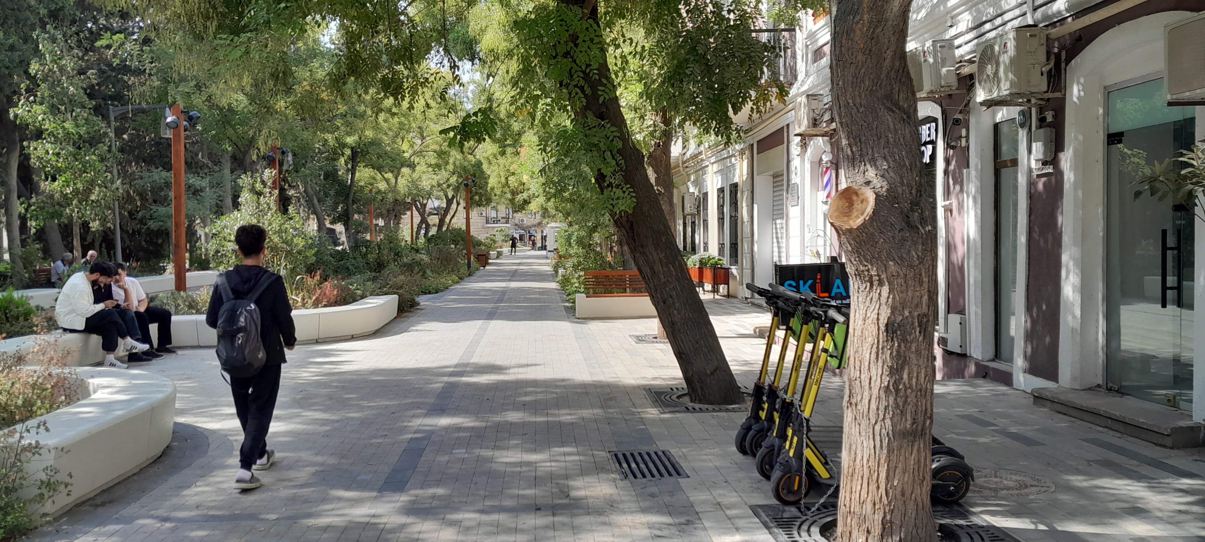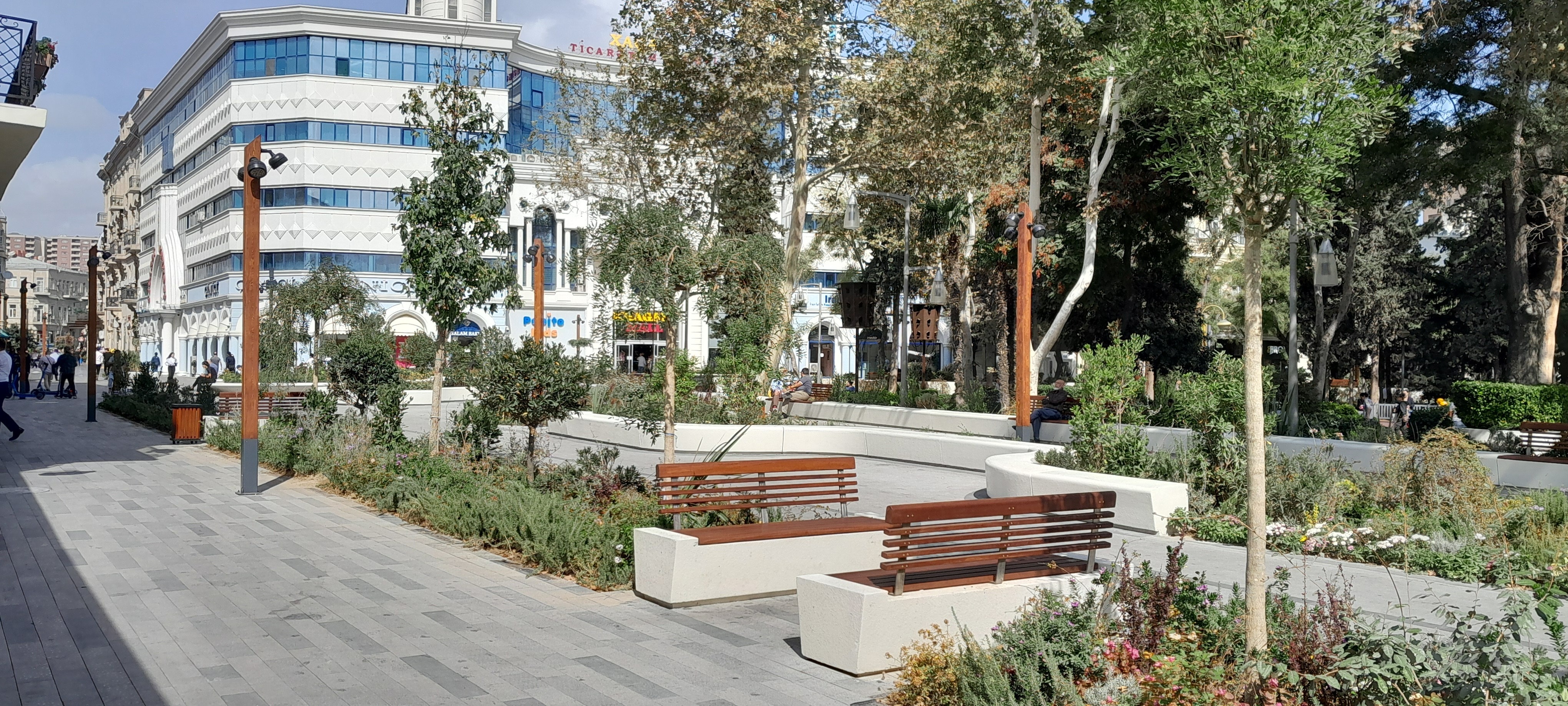 Отправился смотреть обновленный Молоканский садик. Когда там шли работы в сетях прямо плач стоял: аман, садик разрушают, деревья вырубают. Неправда, надо подождать чем кончится прежде чем кричать. Все деревья на месте, а окружавшие садик автомобильные дороги и тротуары ликвидированы, вместо них создана пешеходная зона с скамейками. Мне понравилось.