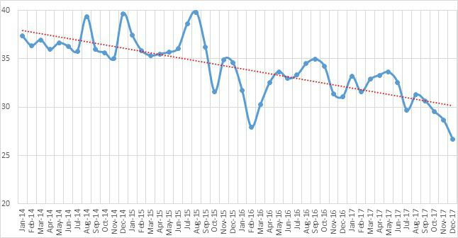 График 5. Теневая экономика в Армении в 2014-2017 гг. (ежемесячная оценка)