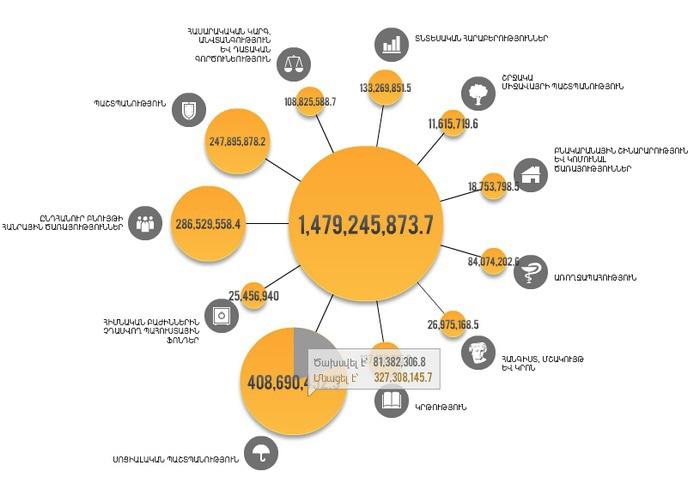Портал электронного правительства Армении ежедневно публикует статистику расходов бюджета по статьям. Это делается в интерактивном виде: