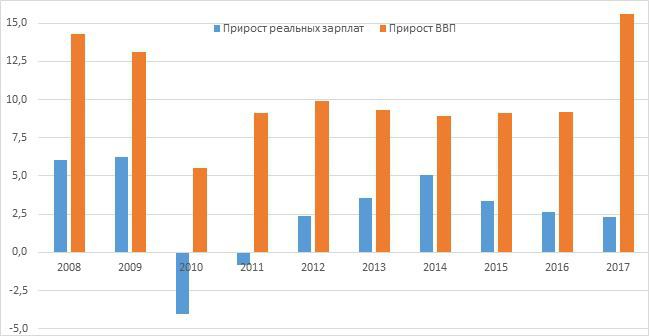 График 2. Расхождение темпов прироста зарплат и ВВП в НКР[7]
