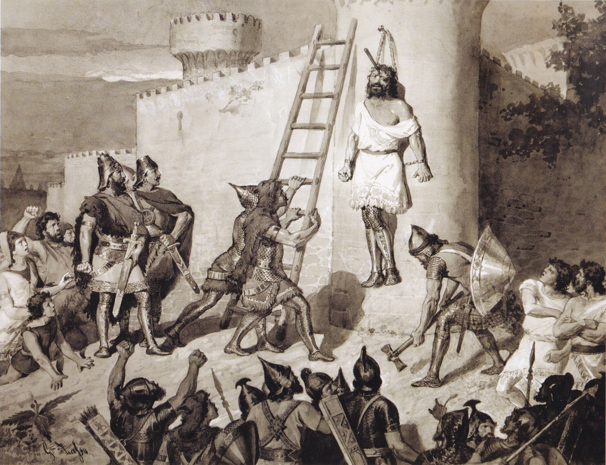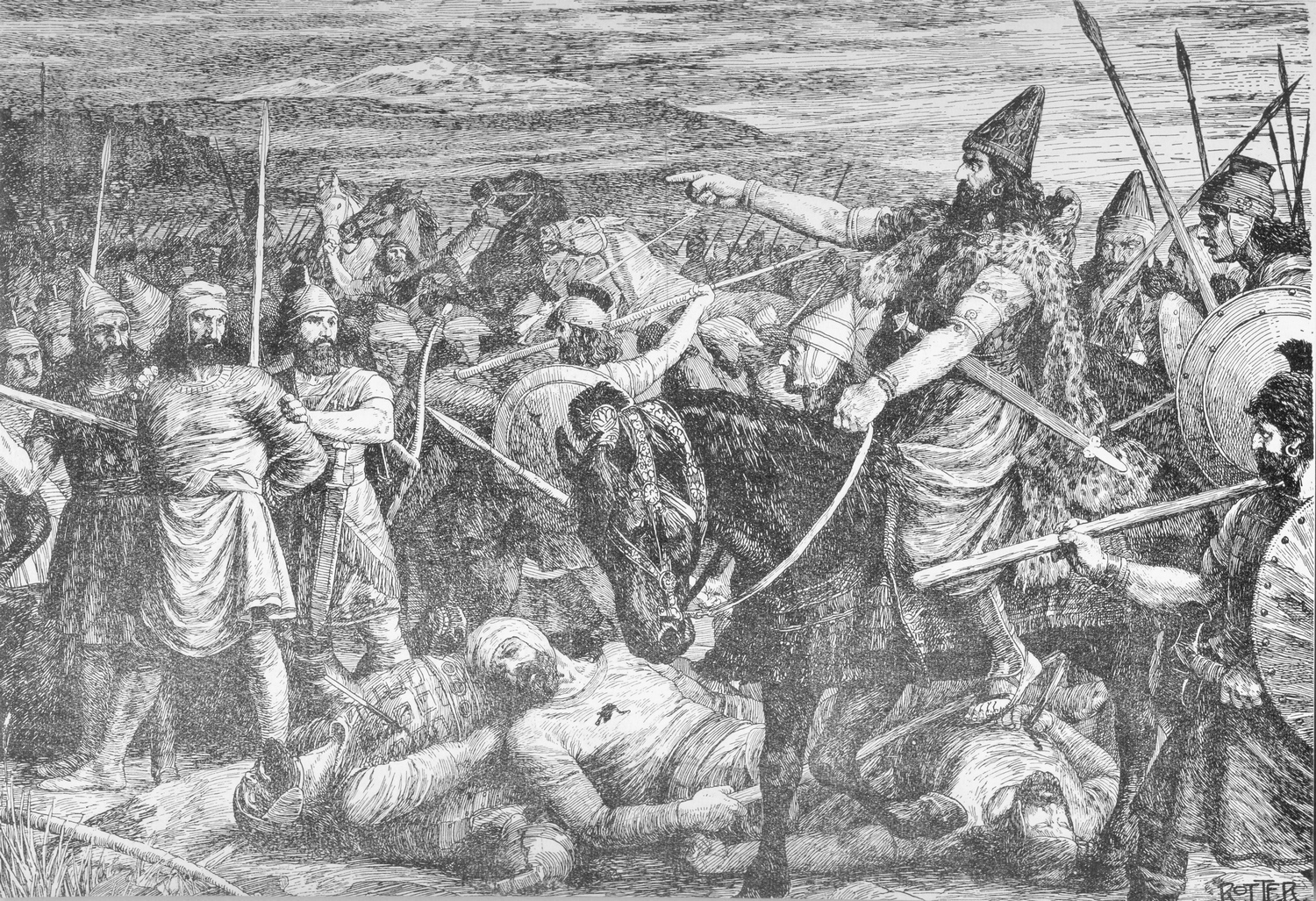 Роттер изобразил исход битвы, но не ее результат в виде пригвожденного к крепости мидянина.