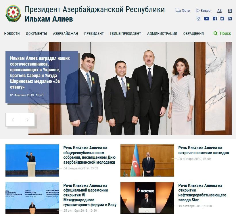 Скриншот сайта президента Азербайджана.